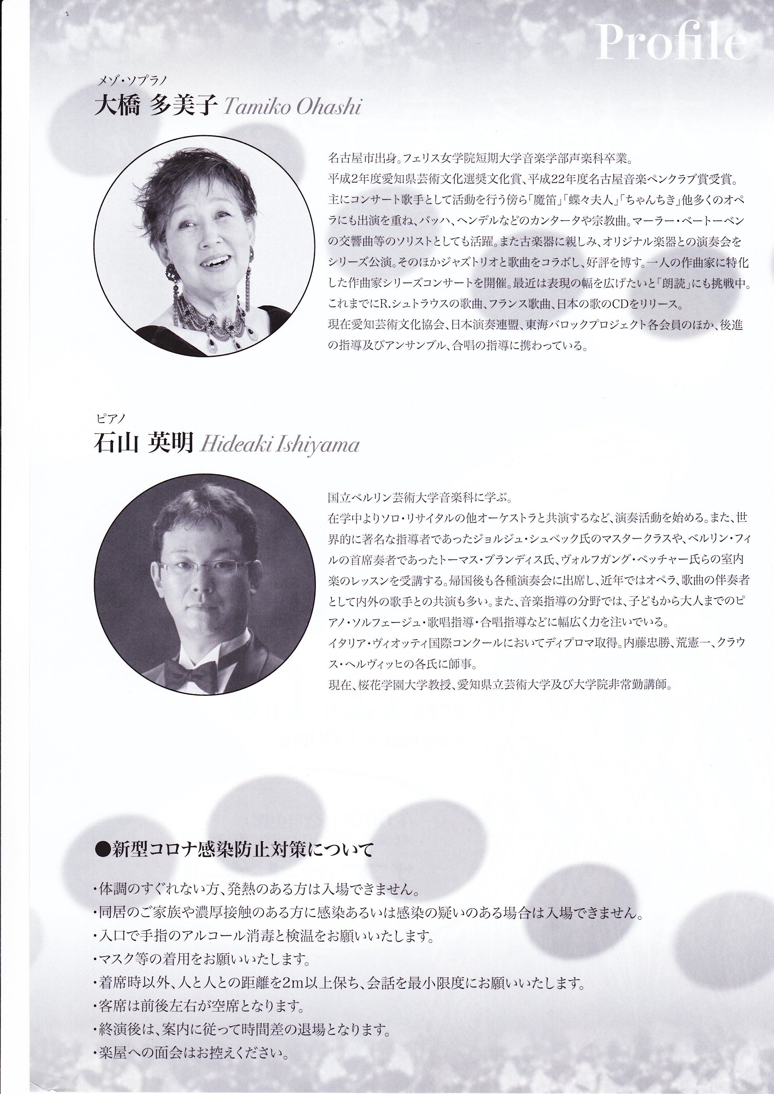 | むーん、厳しい状況です。 先週の日記で「来週は音楽プラザです」と終わりましたが当分なさそうです。 感染拡大が止まりません。愛知県でも1日の感染者数が200人を超えました。 我々名混としても緊急のスタッフ会議を開催し、年内の練習中止を決定しました。 残念ですが、まだ予防法・治療法が確立されていない現在では仕方ありません。 大橋先生、ピアノの中村さんとはしばらくのお別れです。 どうぞお元気で活躍されますように。 大橋先生のチャリティーリサイタルが中日新聞で取り上げられました。 平日ですのでまだサラリーマンの管理人は行くことはかないませんが、きっと心温まる演奏会になると思っています(マネジメントは二宮さんですね。よろしくです←管理人がいうことではないっ!) |