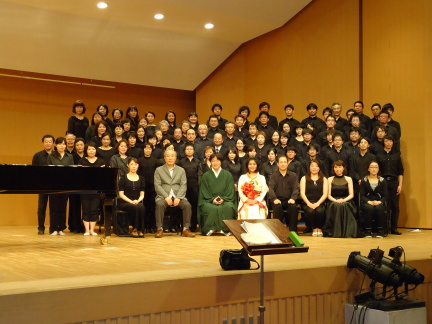 | 今年も来ました。年に一度の本番日記。 名混としての集大成の日です。今年はいろいろな思いを込めて臨みます。 当日の朝は穏やかに晴れ、多くのお客様が来ていただけそうな予感がします。 男声で舞台の設営、表方の準備、そしてゲネプロと進めていきます。 まだまだ発展途上の名混、ゲネプロでもガンガン歌っていきます。練習、練習。 あっという間に開演の時間を迎えました。 舞台に立ちます。正面はほぼいっぱいのお客様! 第1ステージは小泉さんの指揮で大中恩先生の「こどものうた」から入ります。進行は本業がバスの運転手である杉山さん。プロのトークで会場を沸かせます。 こどものうたは、皆さんがご存じの「いぬのおまわりさん」「サッちゃん」、そして四重唱、男声、女声合唱と続き、最後はまた全員で歌います。まだ学生の中村君(実は作曲もしていて、賞もいただいているとのこと。スゴイ)のピアノ伴奏で最後の「バナナを食べるときのうた」まで和やかに進みました。 第2ステージは打って変わって外国の曲です。 スペインの作曲家、ブストの「Ametsetan」、夢見るという訳題がつきます。そしてブラジルの大作曲家、ヴィラ=ロボスの「ブラジル風バッハ第9番」と続きます。実はバッハでは結構ドタバタがありましたが聴いていただいた方はわかったでしょうか?冷や汗かきっぱなしの第2ステージでした。 後半のステージは、今日の演奏会のサブタイトルともなっています、寺嶋先生とともに、先生の曲を演奏します。 第3ステージは羽根先生指揮、中谷先生ピアノで竹内浩三作詞による「ふるさとの風に」全6曲+「骨のうたう」を演奏しました。当日のパンフには「骨のうたう」は未出版と書きましたが、近日中に”完全版”として出版されるとのこと(寺嶋先生から『皆さんが演奏していただいたおかげで版を重ねることが出来ます(笑)』とのことでした)寺嶋先生の前でいやが上にも気合いが入ります。羽根先生の指揮も絶好調、終曲の「骨のうたう」まで緊張が途切れることなく歌いきることが出来ました。 羽根先生と寺嶋先生のトークの間に舞台転換、弾き振りの準備が出来ました。 第4ステージは寺嶋先生の弾き振りで、先生が編曲された武満徹の「Songs」全7曲を演奏します。 寺嶋先生の弾き振りはpfもさることながら我々合唱も完全に掌握し、それでいて実力以上の力を発揮させていただけたと思います。特に7曲目、最後の「死んだ男の残したものは」は歌う我々が言うのも何ですが、鬼気迫る名演奏ではなかったかと (いえいえ、それはお聞きになった皆様が判断されることですね)思います。 最後は再び羽根先生に登場いただきアンコール。羽根先生が一番お好きだという寺嶋先生作曲の「風になりたい」を歌いました。最後は感極まって目を真っ赤にした団員も何名か。 管理人も結構こみ上げてくるものがありました(目の前がぼやけて結構ヤバかった。汗?) まずは第17回演奏会が無事に終わりましたこと。ここにご報告申し上げます。 ご指導いただきました寺嶋先生、羽根先生、小泉さん。pf伴奏の中谷先生に中村君 裏方の二宮さん(今年もプロにお願いしてしまいました^^)、表方の福本さん、カメラマンの田中さん(城山さんのご友人。500枚以上の写真を撮っていただいたとか)、表方スタッフの皆さん。 最後にお越しいただきました皆様に、団員一同感謝申し上げます。 ありがとうございました。 さぁて、演奏会が成功裏に終わり、打ち上げで皆さんの労をねぎらいます。 寺嶋先生もお越しいただきいろんな話で盛り上がりました。 ステマネの二宮さんは「名混の皆さん、去年より声が若くなった気がします」とのうれしいお話。 寺嶋先生、羽根先生、中谷先生には最後まで打ち上げにおつきあいいただきありがとうございました。 名混は次に向かってスタートします。 |